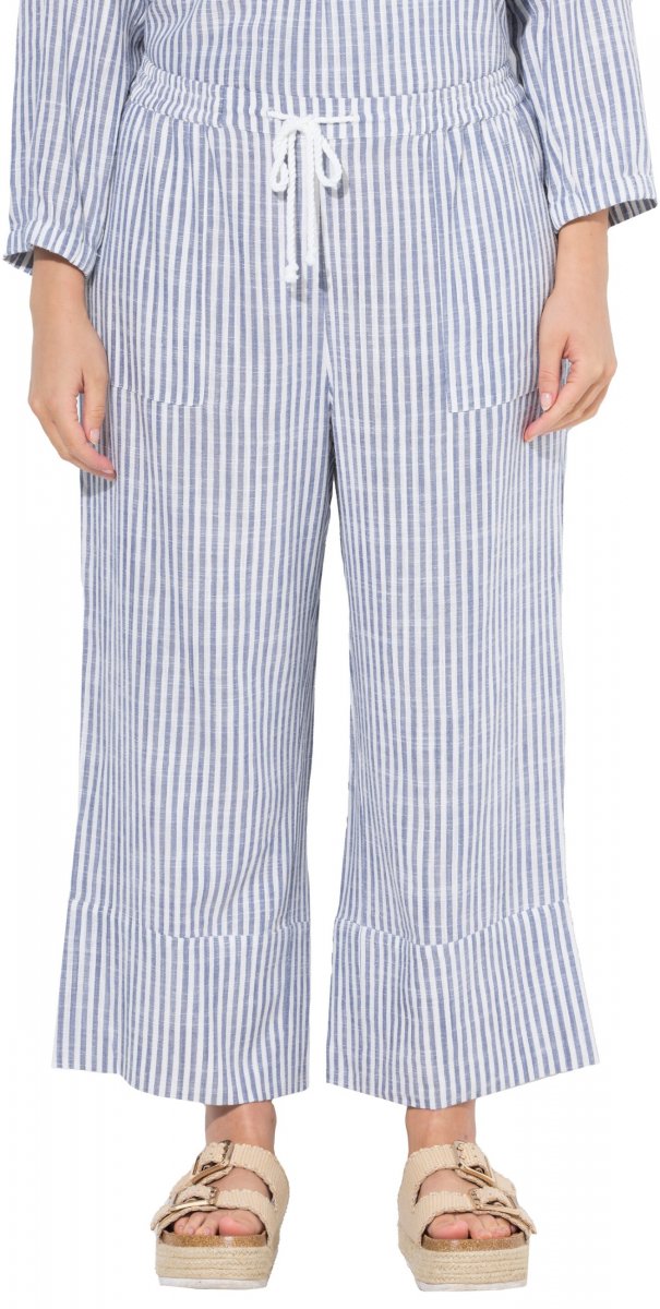 Ulla Popken Coastal Stripe Linen Blend Elastic Waist Culottes Blue
