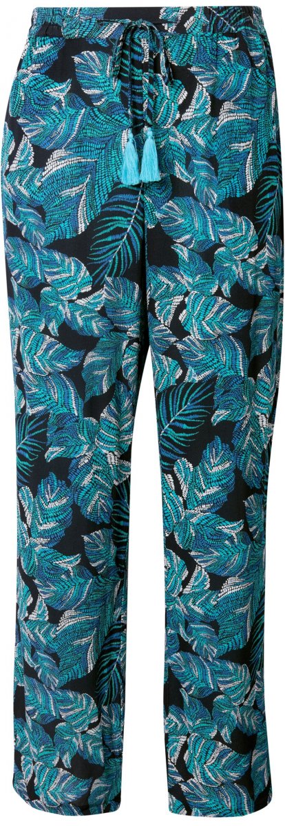 Ulla Popken Tropical Leaf Print Elastic Waist Pants Blue