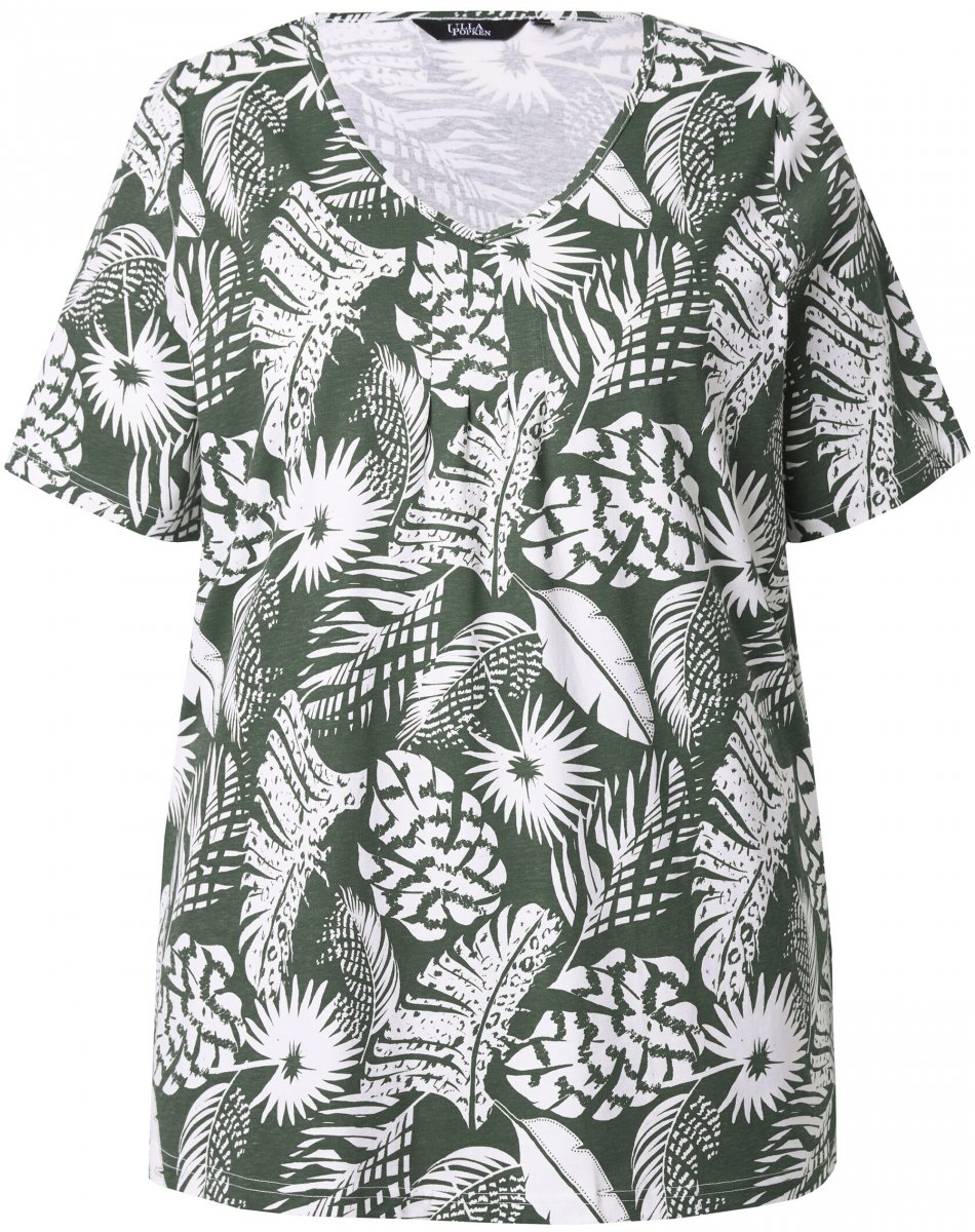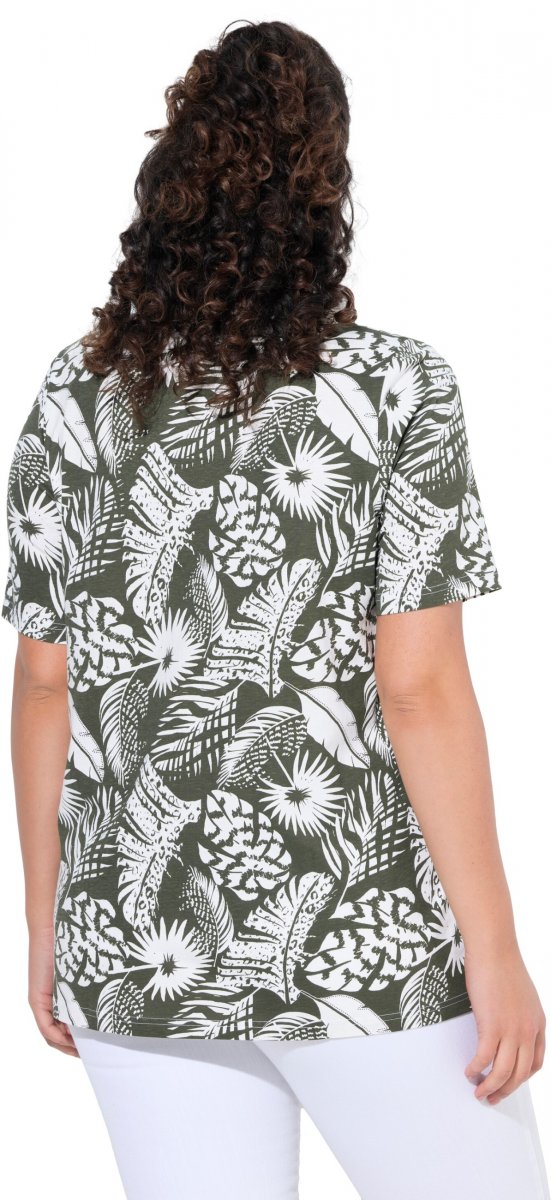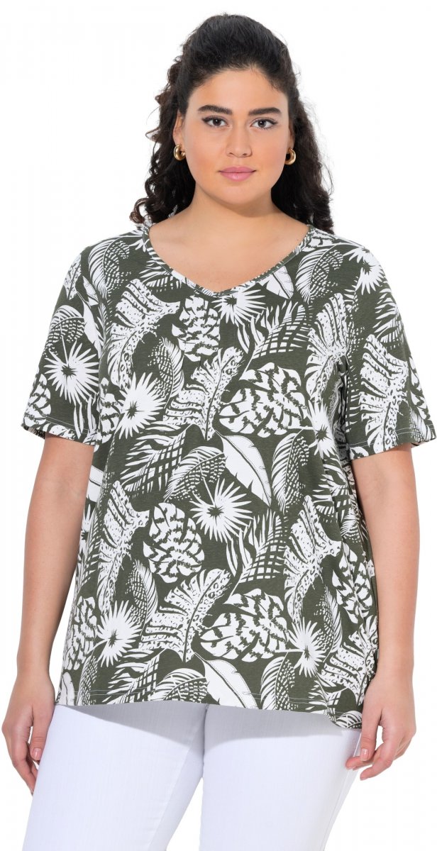 Guida alle taglie - Ulla Popken Feather Print Short Sleeve V-Neck Tee Olive Grey