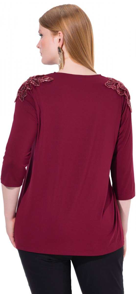 Guida alle taglie - Ulla Popken Flower Epaulet 3/4 Sleeve Top Dark Cherry Red