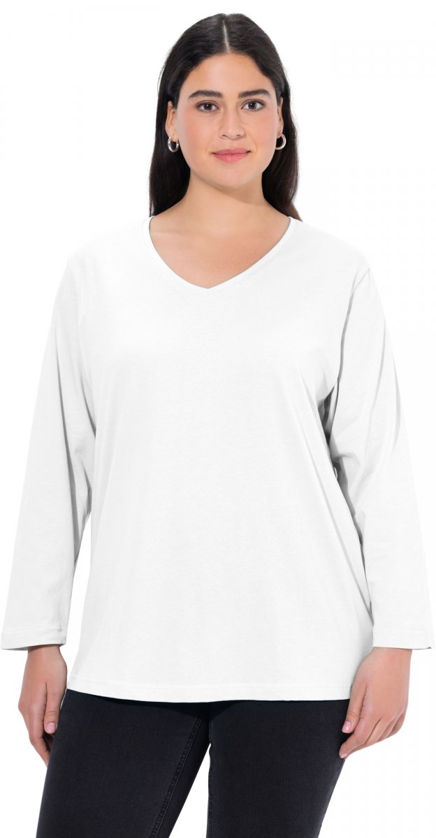 Guida alle taglie - Ulla Popken Back To Basics V-Neck Relaxed Fit Cotton Tee Snow White