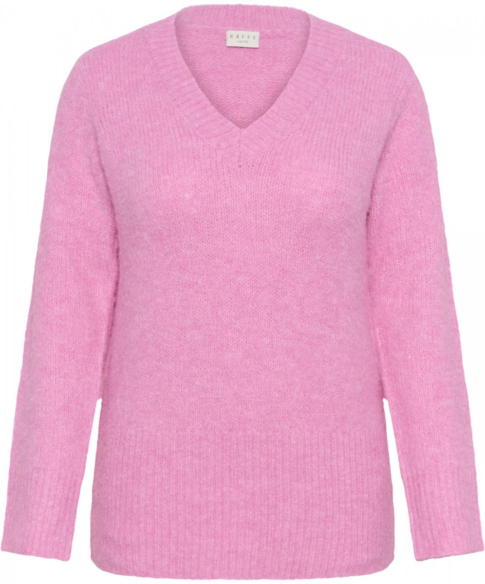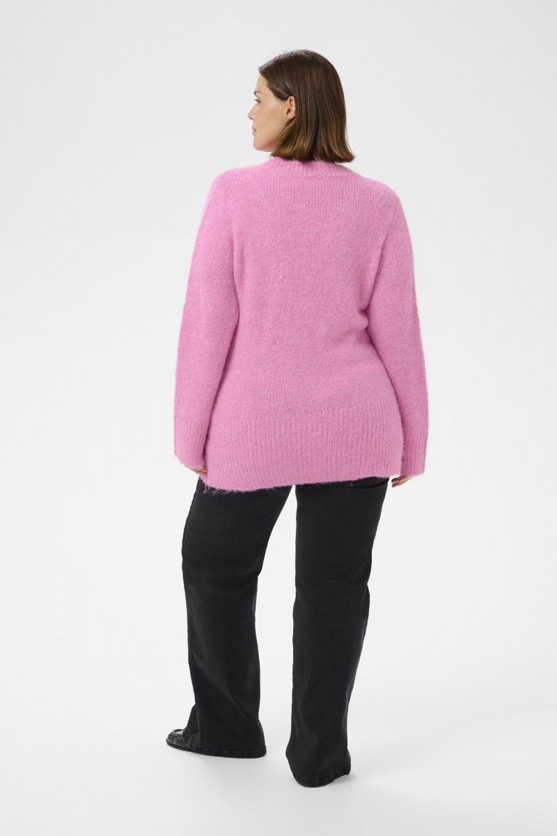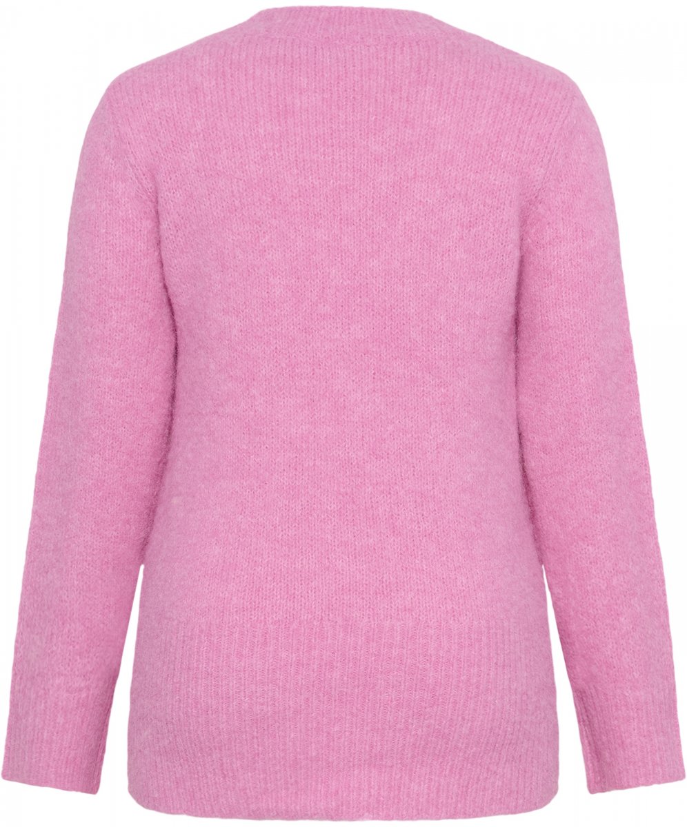 Maglione a magliaDisponibile nelle taglie S–XLDel marchio Kaffe CurveMateriale: 64% poliestere (riciclato), 18% acrilico, 10% lana (certificata), 5% alpaca, 3% elastanVestibilità comodaColore rosaFare clic qui per visualizzare la guida alle taglie