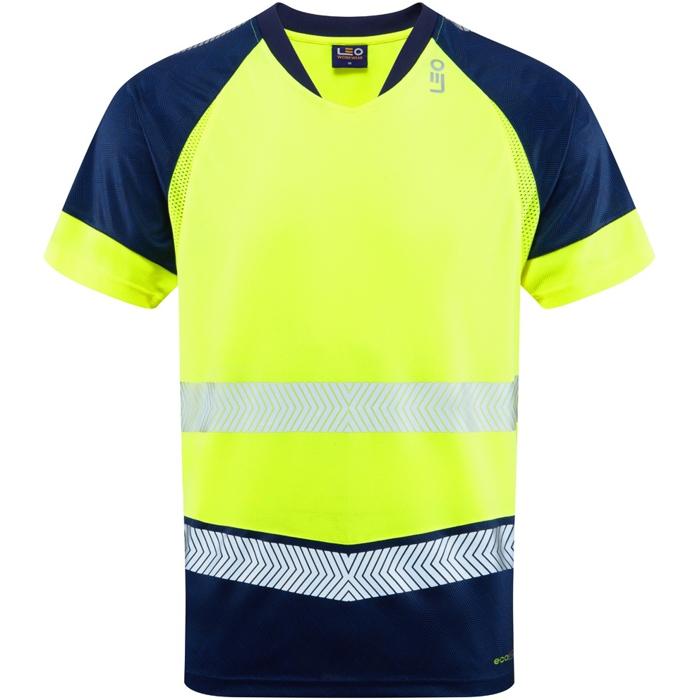 Guida alle taglie - Leo Forda Ecoviz Performance+ Dual Colour T-Shirt Hi-Vis Yellow/Navy Print