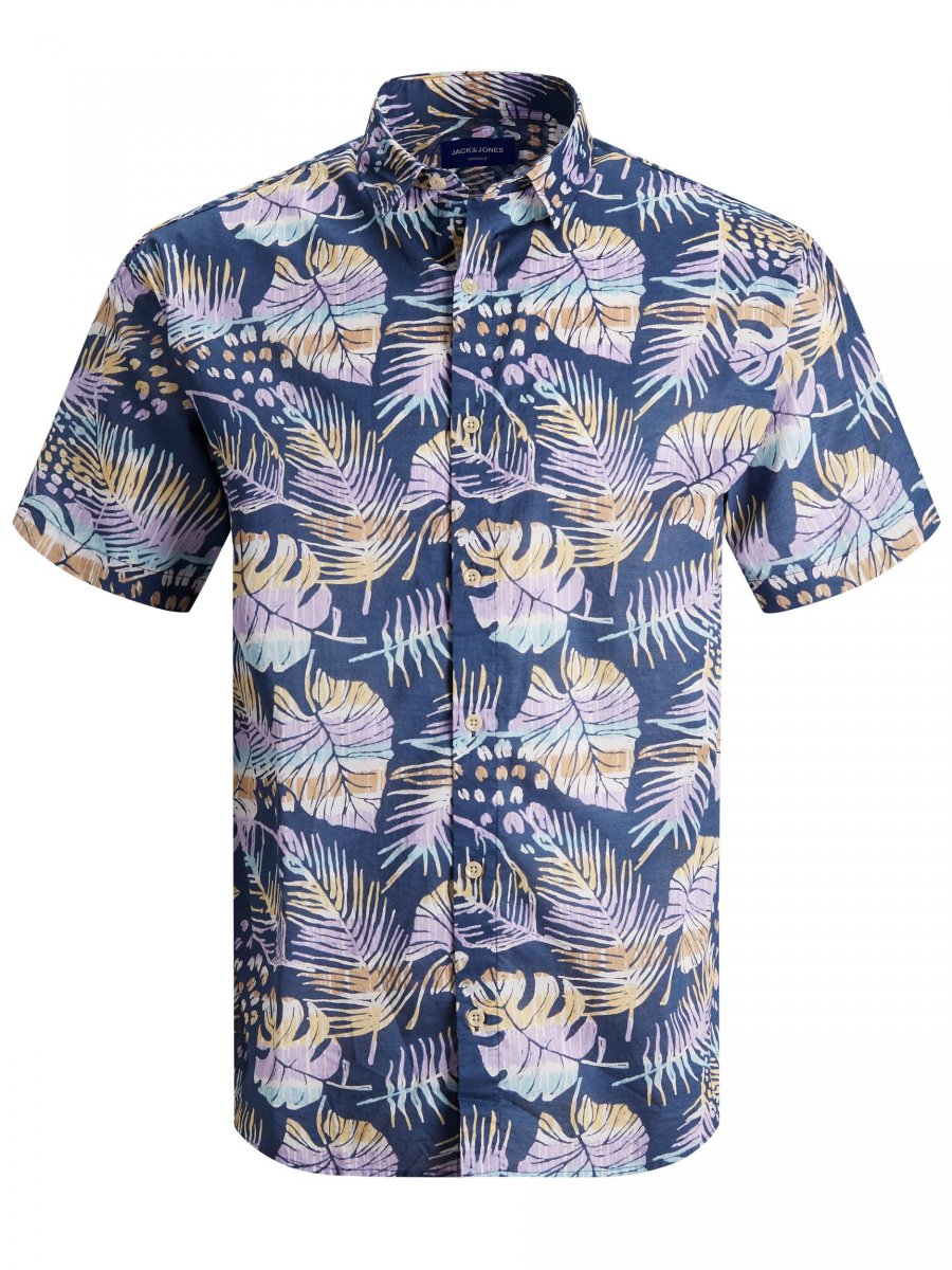 Camicia hawaiana taglie fortiLo vendiamo nelle taglie 3XL-8XLDel noto marchio danese JACK & JONESRealizzato in 100% cotoneColore bluLavaggio in lavatrice a 40°"Prodotto stagionale/Season product" - le taglie non sono riassortite