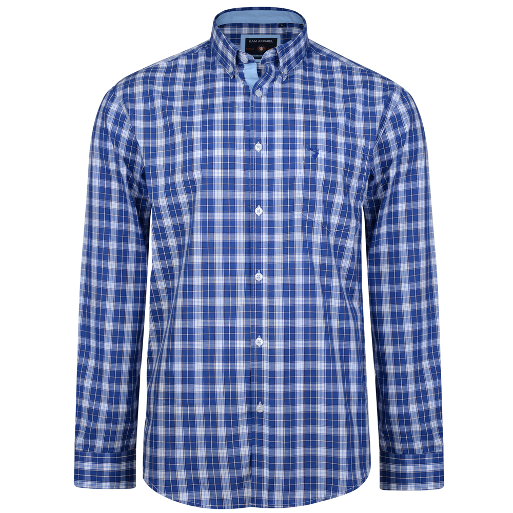 Kam Jeans 6155 Long Sleeve Check Shirt Blue