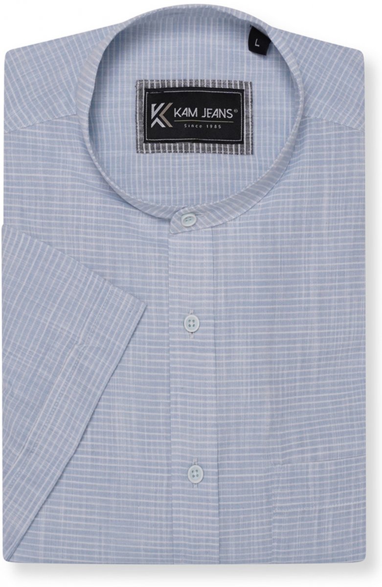Guida alle taglie - Kam Jeans 6334 Striped Grandad Short Sleeve Shirt Blue