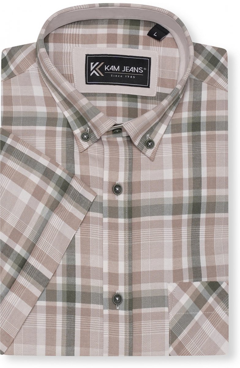 Guida alle taglie - Kam Jeans 6339 Checked Short Sleeve Shirt Beige