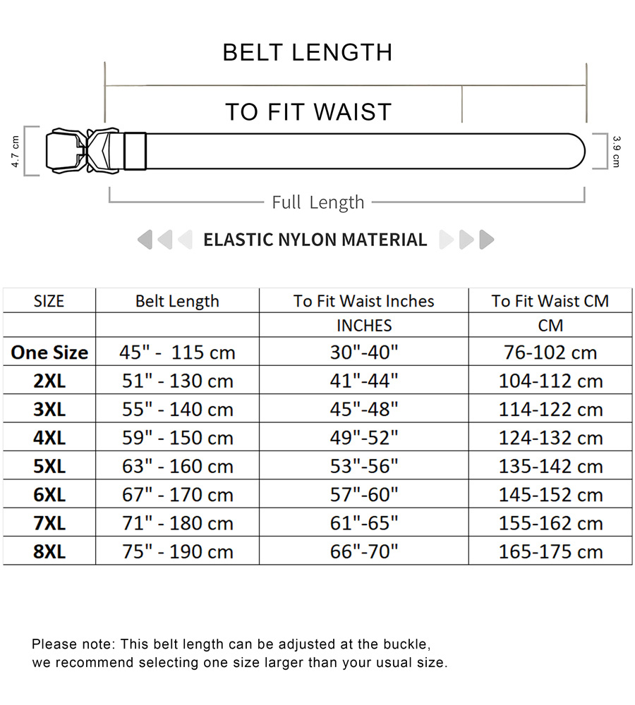Guida alle taglie - D555 Dale Tactical Stretch Webbing Belt with Heavy Duty Quick Release Buckle Khaki