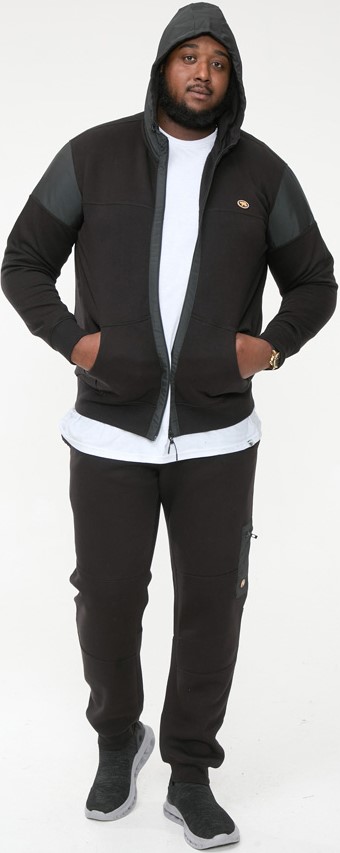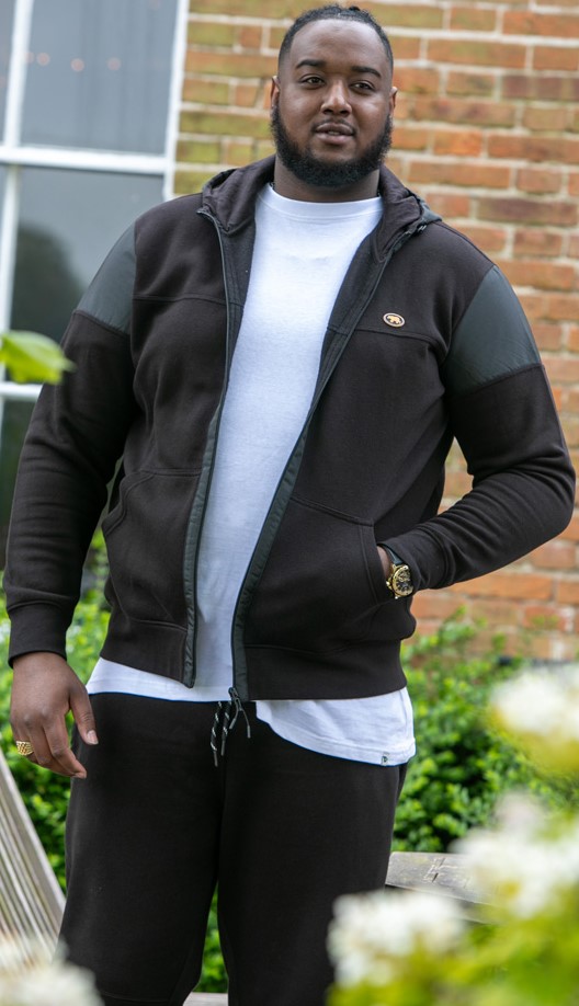 Guida alle taglie - D555 DEAN Couture Zip Through Hoody With Woven Contrast Fabric Trim Black