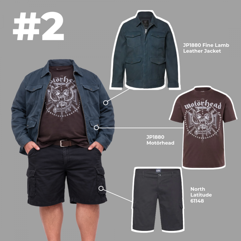 Un’ottima scelta per le giornate primaverili più fresche. La giacca dà calore, la T-shirt assicura comfort e i cargo shorts aggiungono praticità grazie alle tasche.