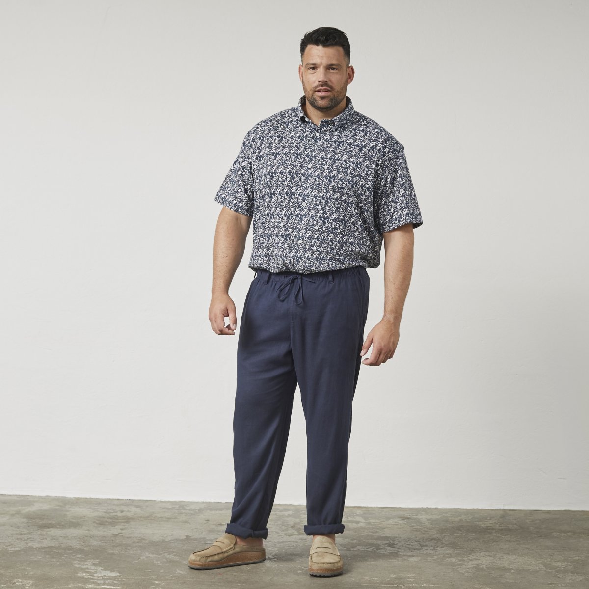 Pantaloni taglie fortiLo vendiamo nelle taglie 3XL-8XLDel marchio North LatitudeRealizzato In 55% Lino E 45% ViscosaColore blu navyLavaggio in lavatrice a 30°"Prodotto stagionale/Season product" - le taglie non sono riassortite