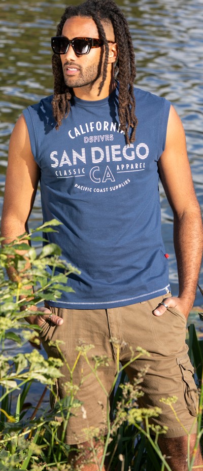 Guida alle taglie - D555 Havant San Diego Printed Sleeveless T-Shirt French Navy