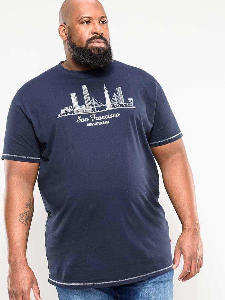Maglietta taglie fortiAcquistabile da noi nelle taglie 3XL-6XLDel marchio britannico di tendenza D555Realizzato in 100% cotoneColore blu navyLavaggio in lavatrice a 30°"Prodotto stagionale/Season product" - le taglie non sono riassortiteFare clic qui per visualizzare la guida alle taglie